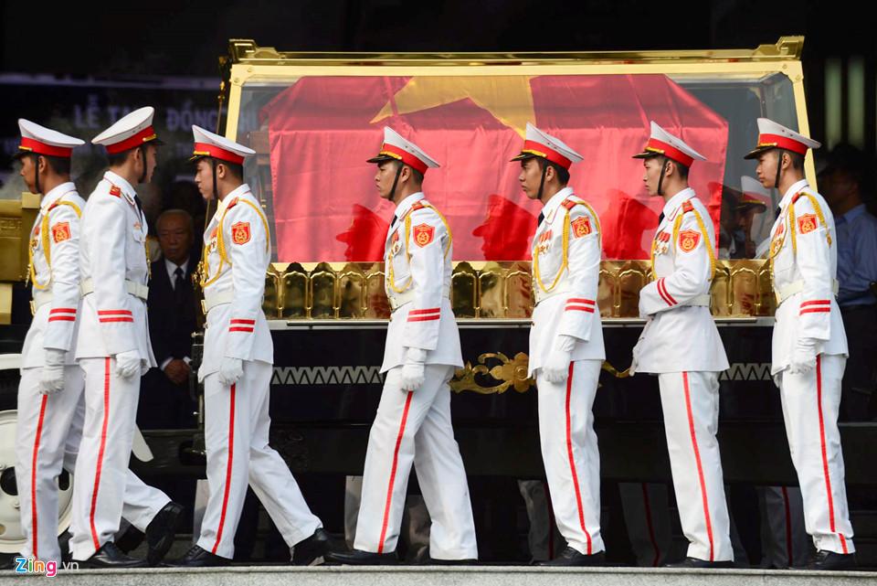 Linh cữu của nguyên Thủ tướng Phan Văn Khải được phủ quốc kỳ.