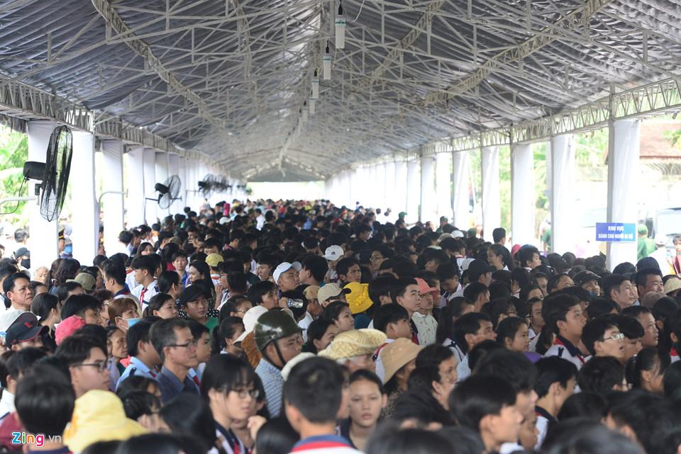 Bà Tư Điểm, người dân xã Tân Thông Hội rơi nước mắt khi nhắc tới bác Sáu. Bà cho biết cả 2 người con đều được bác Khải hỗ trợ tiền học đại học. Bà ở đây đứng chờ đoàn xe rước linh cữu từ lúc 6h sáng.