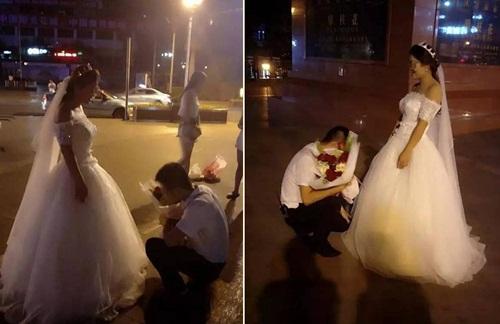 Lúc được cầu hôn chàng trai cảm thấy vô cùng áy náy với người yêu. Anh muốn cô đứng lên, hứa sẽ thực hiện một màn cầu hôn hoành tráng khác, không thể để cô chịu thiệt thòi nhưng cô bạn gái xinh đẹp lại không đồng ý.