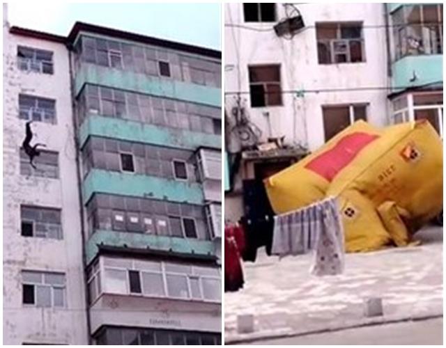 Người đàn ông đã được cứu mạng nhờ một tấm thảm bơm hơi khổng lồ đặt bên dưới khi anh ta đe dọa sẽ tự tử sau khi mâu thuẫn với gia đình và còn nợ đầm đìa không trả được.