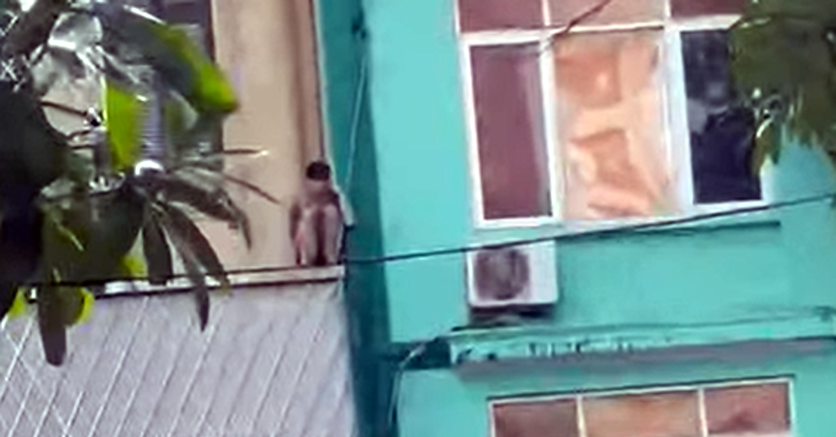 Hình ảnh người đàn ông đứng trên khu vực cầu nối của 2 tòa nhà tại Bệnh viện Đa khoa Gia Lai được người dân ghi lại