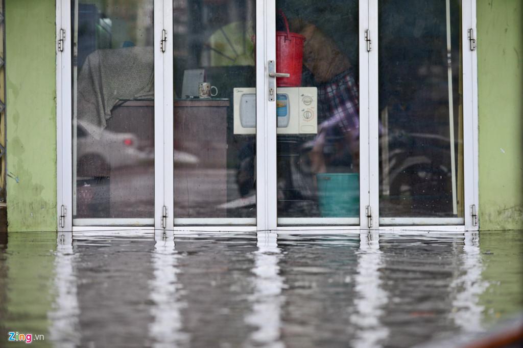 Trong cơn mưa, một số căn nhà được đóng kín cửa, ngăn nước tràn vào trong.