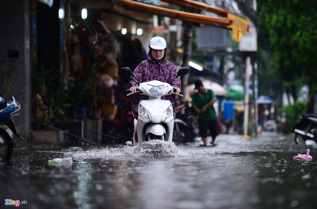 Mưa lớn kèm theo dông trên diện rộng khiến một số tuyến đường trong thành phố ngập nặng như quận Bình Thạnh, quận 5, quận 10...