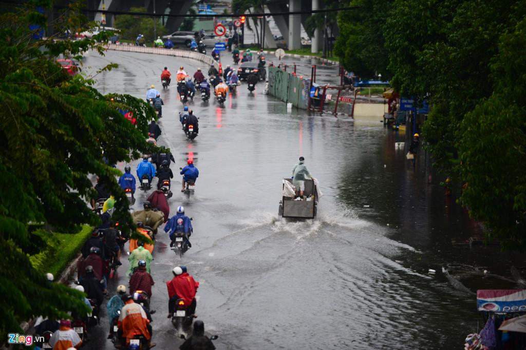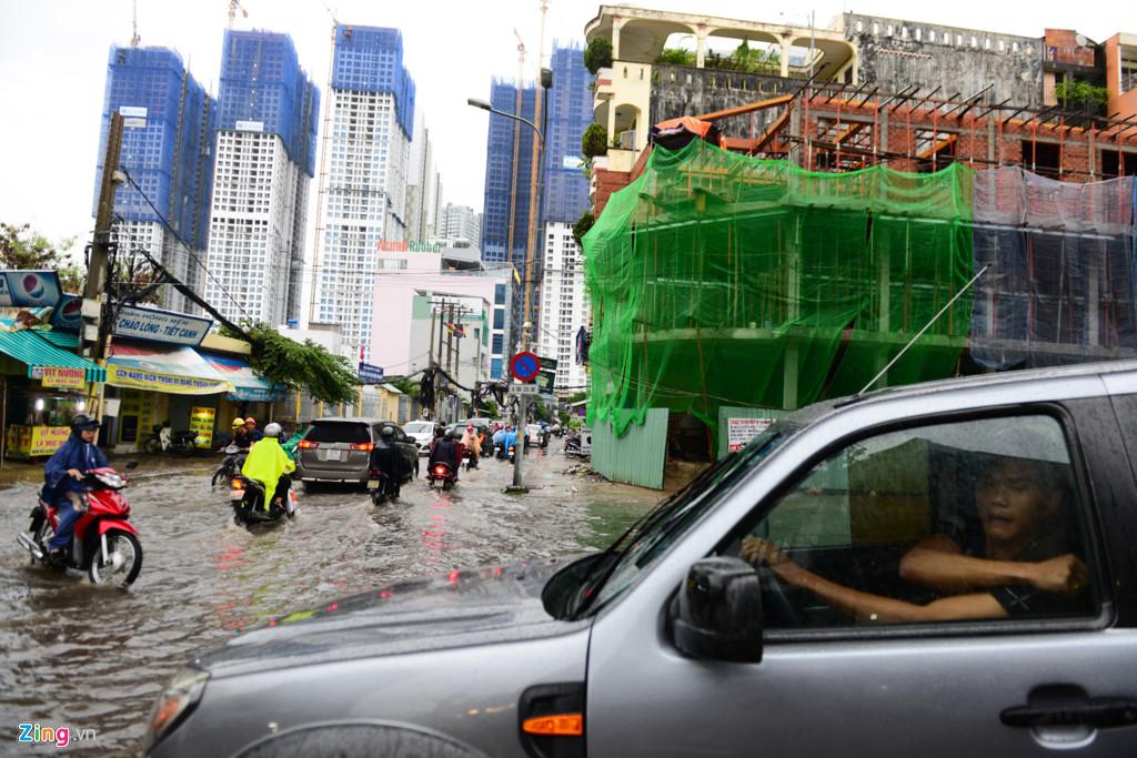 Đoạn từ cầu vượt Văn Thánh đến cầu Sài Gòn, đường Điện Biên Phủ, quận Bình Thạnh cũng bị ngập.