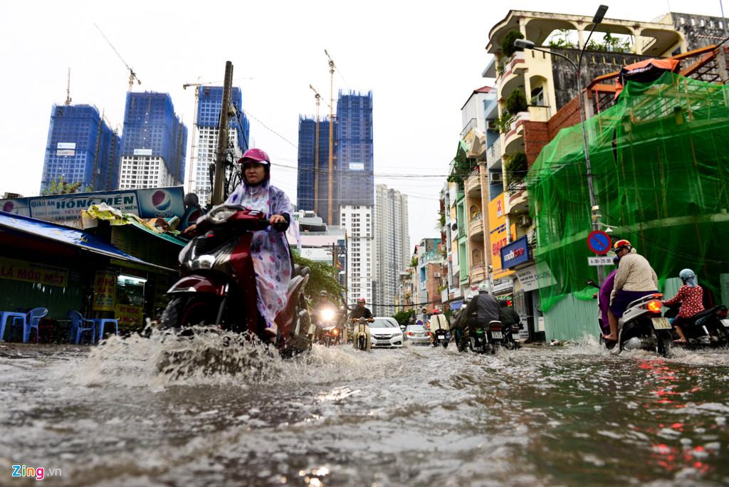 Tại hẻm 602 đường Điện Biên Phủ nước cũng ngập lênh láng. Ông Lê Đình Quyết, Phó phòng Dự báo khí tượng, Đài Khí tượng Thủy văn khu vực Nam Bộ, cho biết rãnh áp thấp khu vực Trung Bộ mạnh lên kết hợp với gió