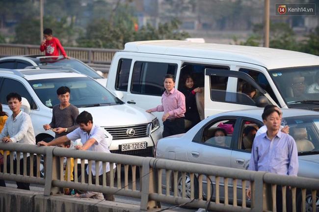 Nhiều người sốt ruột đứng ra ngoài chờ đoạn đường hết tắc.