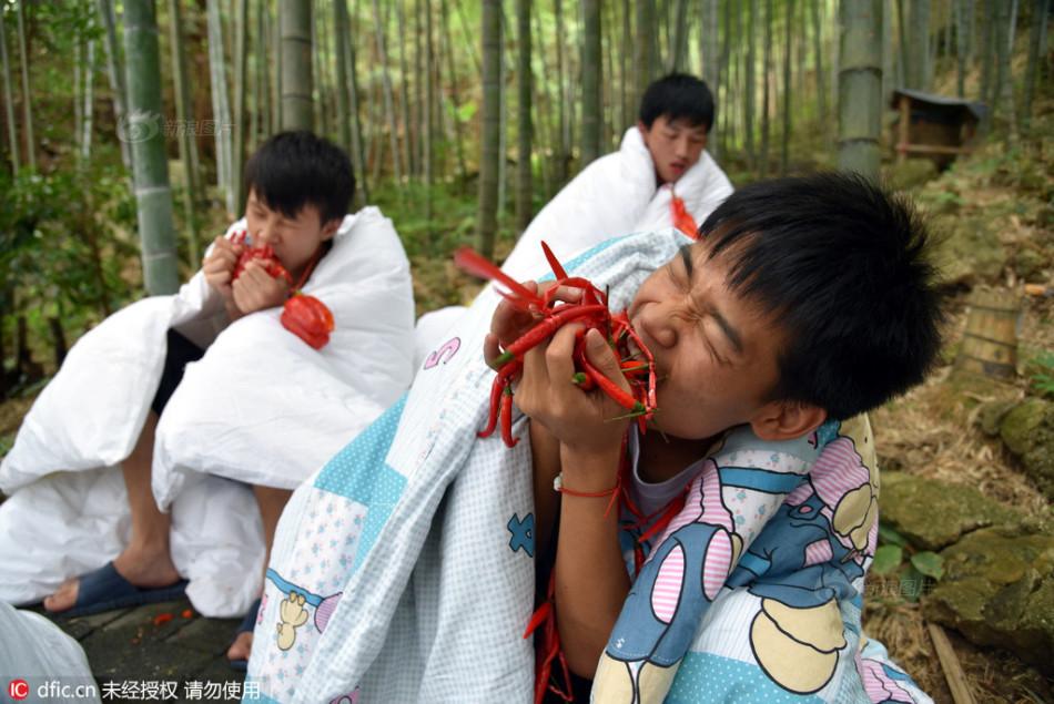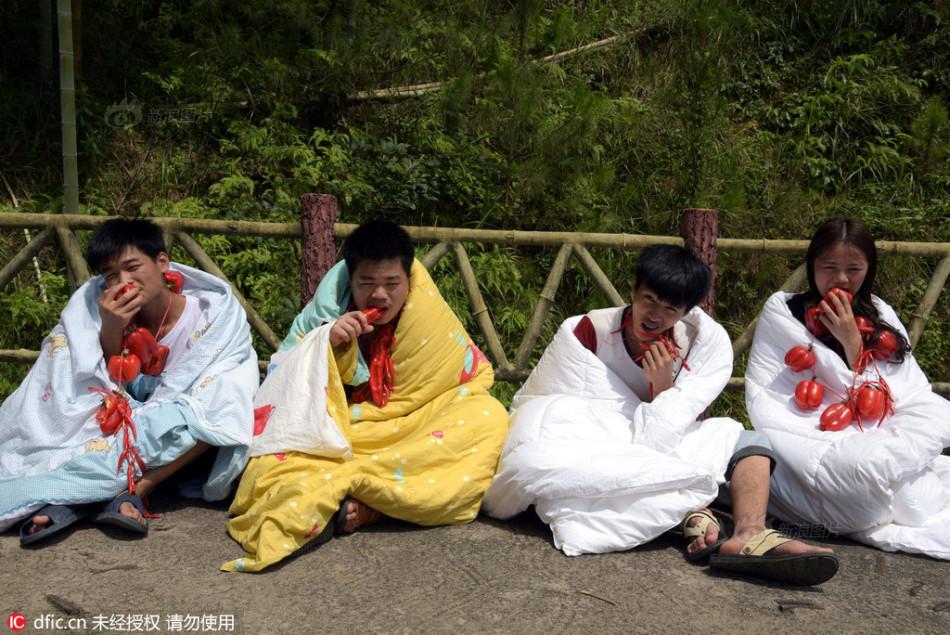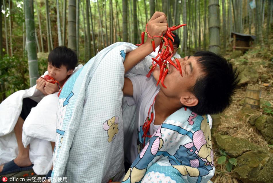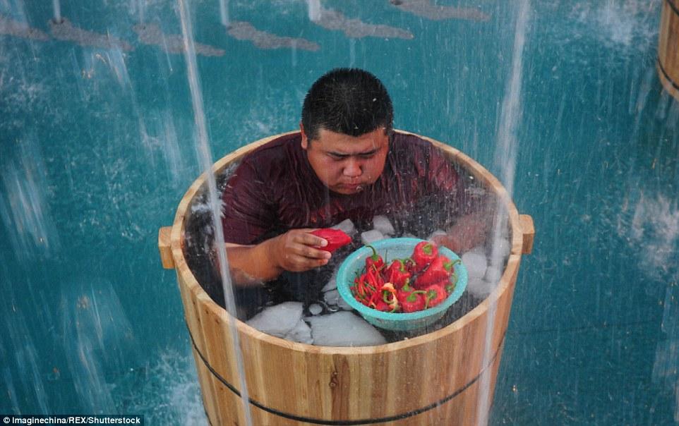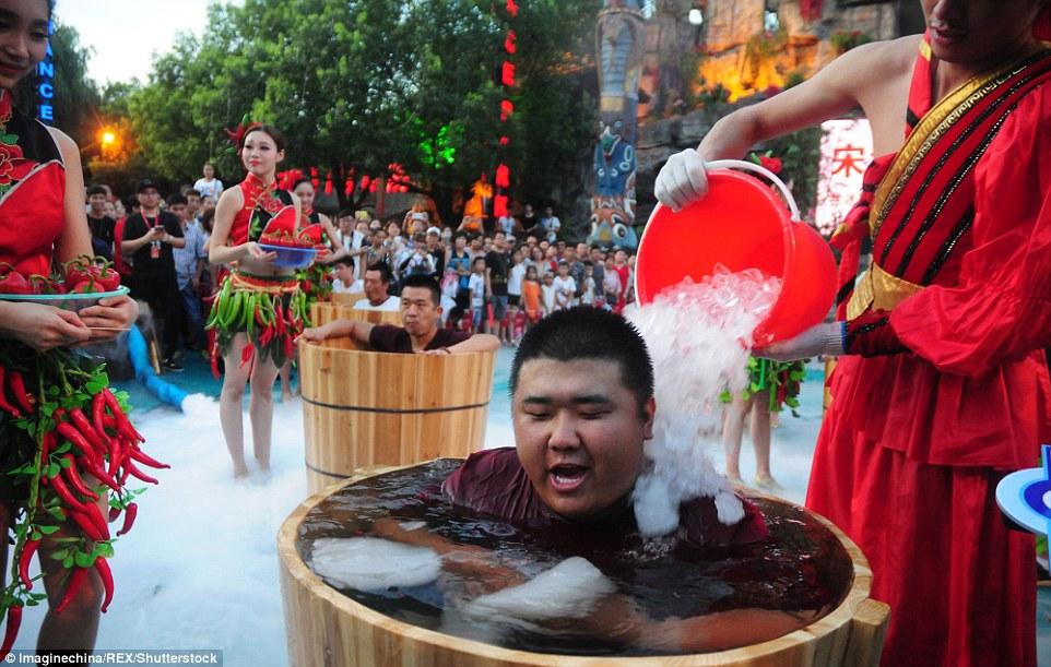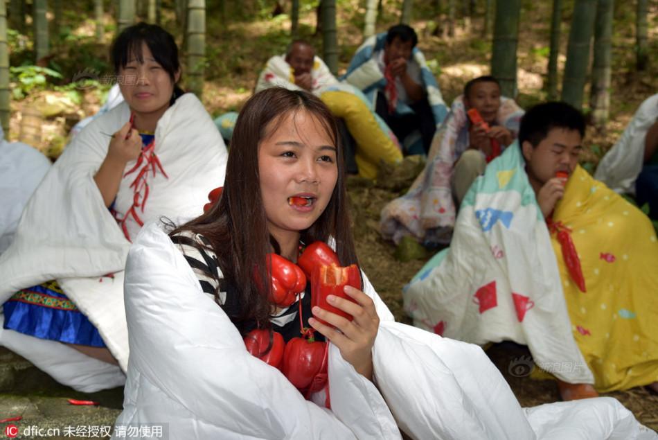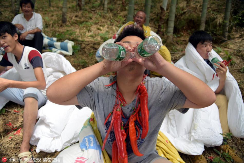 Trong khi các bạn trẻ ở Quảng Đông "đắp chăn ăn ớt" chỉ là bộc phát để gửi thông điệp gần gũi với thiên nhiên tới mọi người thì ở thành phố Hàng Châu, thuộc tỉnh Chiết Giang điều này đã thành một thông lệ được tổ chức thành cuộc thi trong lễ hội hàng năm. Tuy nhiên, thay vì đắp chăn ăn ớt thì những người dân địa phương này lại có cách làm khác đó là "ngâm mình dưới nước để ăn ớt ".