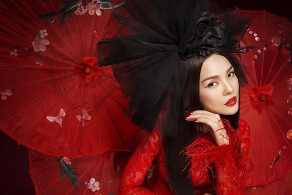 Người đẹp còn khéo léo chọn tông đỏ nổi bật để xuất hiện trong dáng vẻ kiêu sa, lạnh lùng nhất. Nét Á Đông của người con gái Việt xưa được Dương Cẩm Lynh khắc hoạ rõ nét qua đôi mắt, làn môi đỏ retro cùng sự bí ẩn phảng phất bởi nụ cười nửa miệng của nữ diễn viên.