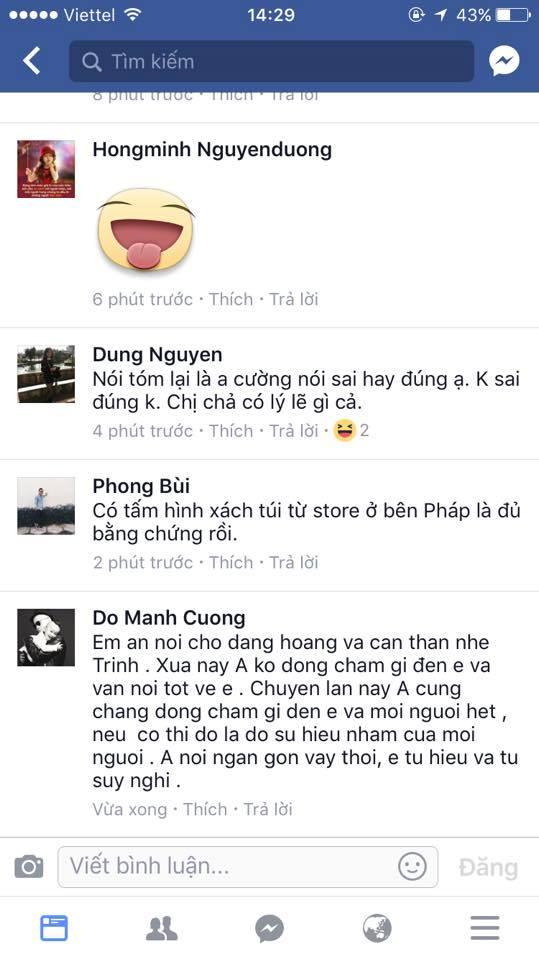 Khẳng định mình không phải là người nhiều chuyện, song với lần "cay mũi" này, Ngọc Trinh cho hay cô không thể im lặng. Rất nhanh sau dòng chia sẻ của Ngọc Trinh, nhà thiết kế Đỗ Mạnh Cường đã lên tiếng cho rằng, anh không cố ý động chạm đến Ngọc Trinh và cũng không có ý nói tới ai trong lời chia sẻ của mình. Ngay sau đó, nhà thiết kế họ Đỗ xóa trạng thái ám chỉ dàn mỹ nhân dùng hàng fake trên trang cá nhân.