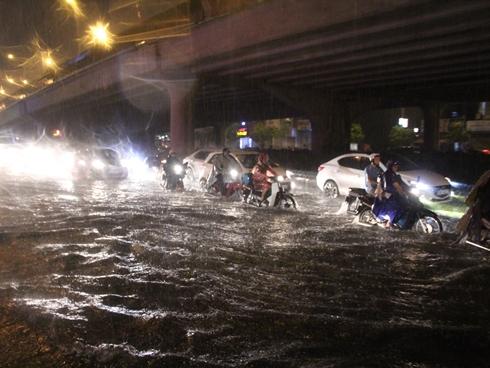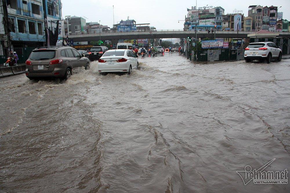 16h, cơn mưa như trút nước xuống Hà Nội khiến một loạt các tuyến phố phía Nam TP như: Minh Khai, Trường Chinh, Thanh Đàm, Nguyễn Chính,... ngập sâu trong nước.