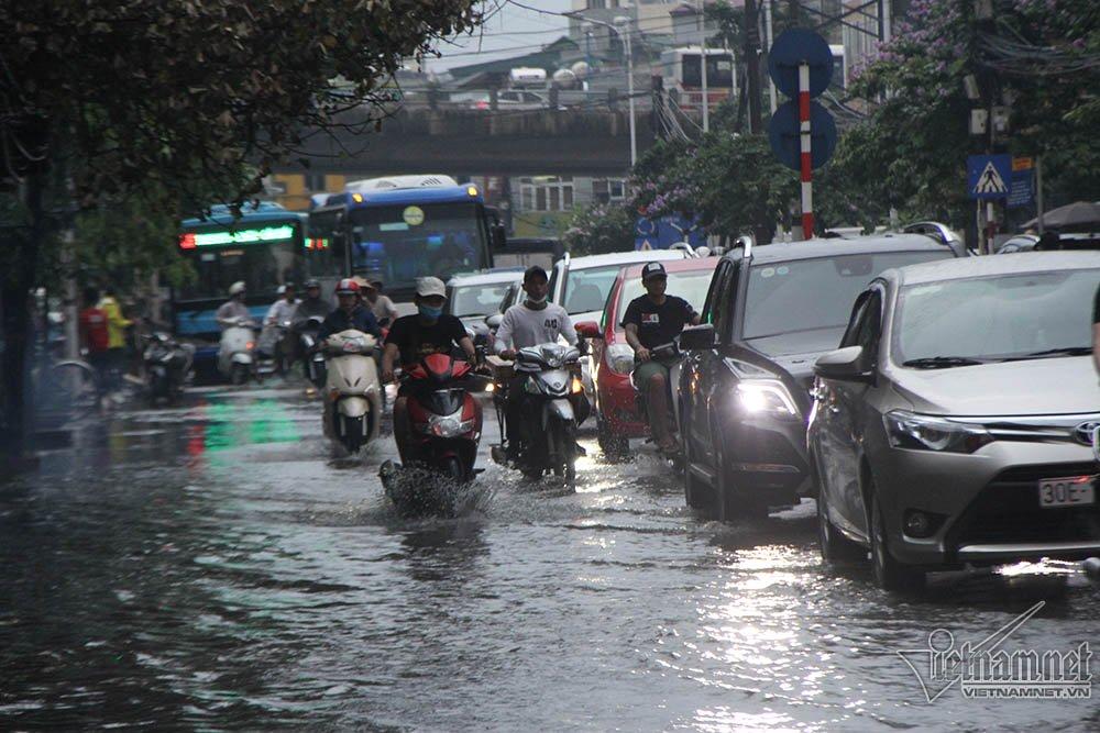 Một số tuyến như Trường Chinh bị ngập tại trước BV Phòng không - Không quân và ngõ 41 (gần cầu vượt Vọng), đường Minh Khai dưới chân cầu Vĩnh Tuy đều có dấu hiệu nước rút nhanh.