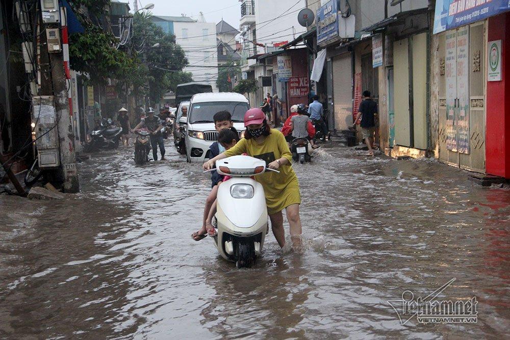 Ngập sâu nhất là phố Nguyễn Chính (Hoàng Mai) từ ngõ 74 đến cống mương hóa Tân Mai ngập quá đầu gối, con phố bị ngưng trệ nhiều phương tiện không dám đi vào.