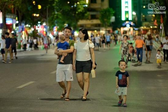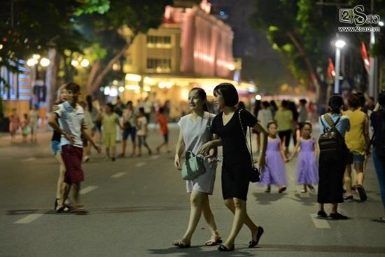 Các khu vực xung quanh hồ Gươm được tổ chức thành phố đi bộ gồm: Phố Đinh Tiên Hoàng, Hàng Khay, Lê Thái Tổ… dường như “nóng” hơn bao giờ hết khi lượng người ghé tới ngày một đông.
