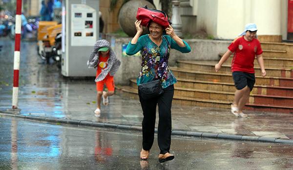 Người dân ở khu vực trung tâm Hà Nội vui mừng tận hưởng không khí mát mẻ do cơn mưa mang lại.
