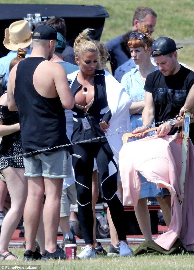 Katie Price vén áo khoe ngực khủng khi quay quảng cáo tại Essex ngày 24/7 vừa qua