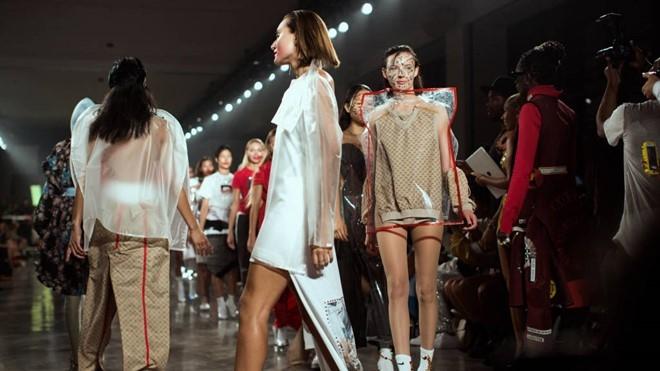 Phong cách áo nylon có lẽ chỉ phù hợp để xuất hiện trên sàn diễn. NTK trẻ Seoyoon mượn thời trang để nói lên các vấn đề xã hội.