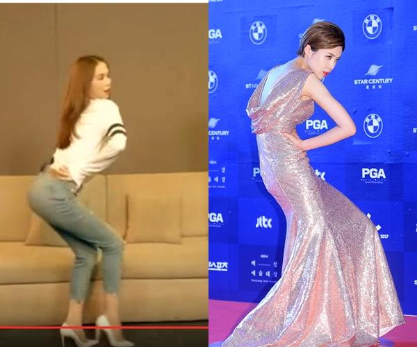 Ngọc Trinh cover dáng pose hình "bá đạo" trên thảm đỏ của nghệ sĩ hài Jang Do Yeon