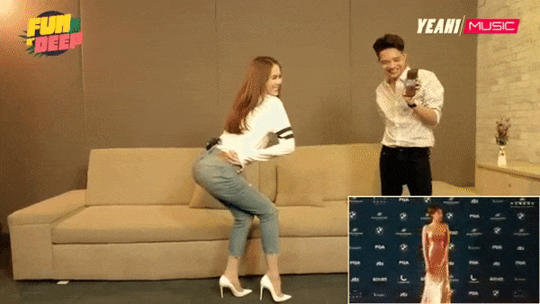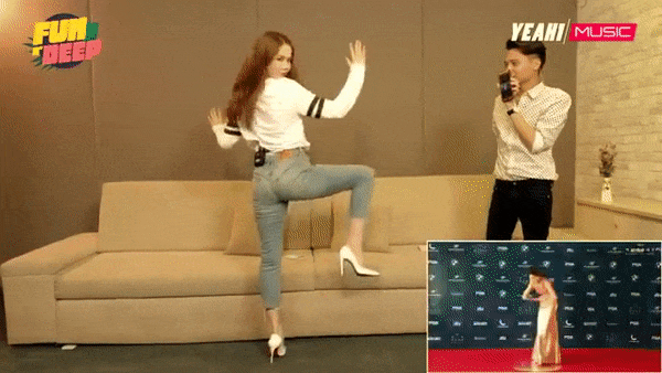 Sau phút trải lòng về đời tư, Ngọc Trinh gây chý ý đặc biệt khi bước vào phần thử thách làm theo yêu cầu khán giả. Theo đó, người mẫu nội y hào hứng nhận lời cover kiểu pose hình "bá đạo" trên thảm đỏ của mỹ nhân Hàn Quốc Jang Do Yeon.