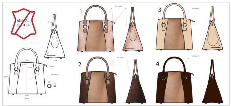 Mẫu phác họa chiếc túi làm từ da người thật với phần da người được thiết kế nằm ở trung tâm của túi.