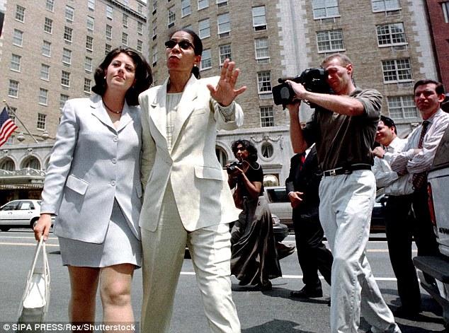 Lewinsky với các luật sư của cô là Nathaniel Speights (trái) và Jacobs Stein (phải) tại Washington, DC vào tháng 6/1998
