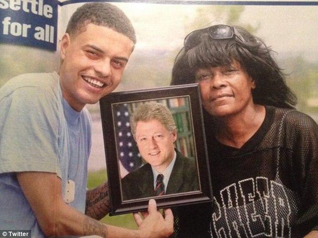 Danney và mẹ bên tấm ảnh "người cha" Bill Clinton.
