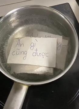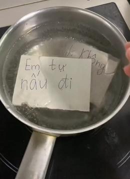 Có lẽ chủ nhân clip cũng đã gặp trường hợp này không ít lần nên cuối cùng cô đã quyết "dằn mặt" anh người yêu bằng một chiếc nồi đầy nước và các "nguyên liệu" đảm bảo đúng ý anh, gồm có: "Anh không biết", "Em tự nấu đi" và "Ăn gì cũng được".