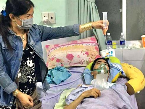 Sau 2 tuần xuất viện, sức khỏe của Nguyễn Hoàng chưa có dấu hiệu hồi phục. Chị ruột của anh nghẹn ngào nói: “Em tôi đang suy yếu dần. Bệnh viện trả về bảo nếu lên cơn ho hoặc bị sặc, em tôi có thể ra đi bất cứ lúc nào. Ngày nào Hoàng cũng sụt cân. Cơ thể bị ăn mòn từ bên trong nên yếu dần”.