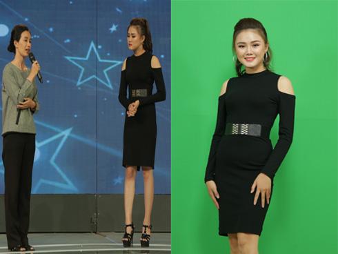 Trish Lương trên sân khấu cùng giám khảo Tim và Trịnh Tú Trung
