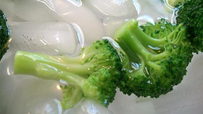 Thông thường, khi luộc rau, muốn rau xanh giòn thì khi rau chín, bạn chỉ việc vớt rau ra rồi thả ngay vào bát nước đá lạnh. Nước đá sẽ giúp rau nhanh nguội, giữ được màu xanh đẹp mắt lại còn giòn hơn. Tương tự như vậy, bạn luộc một số loại củ quả như cà rốt, đỗ thì cũng có thể dùng cách này.