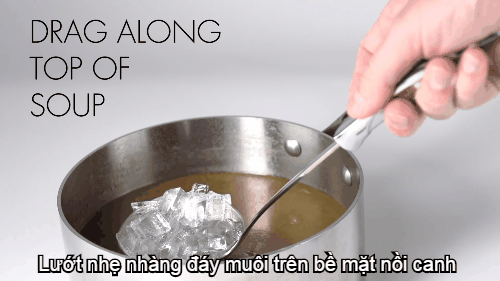 Sau đó, lướt nhẹ nhàng đáy muôi trên bề mặt nồi canh hoặc soup.