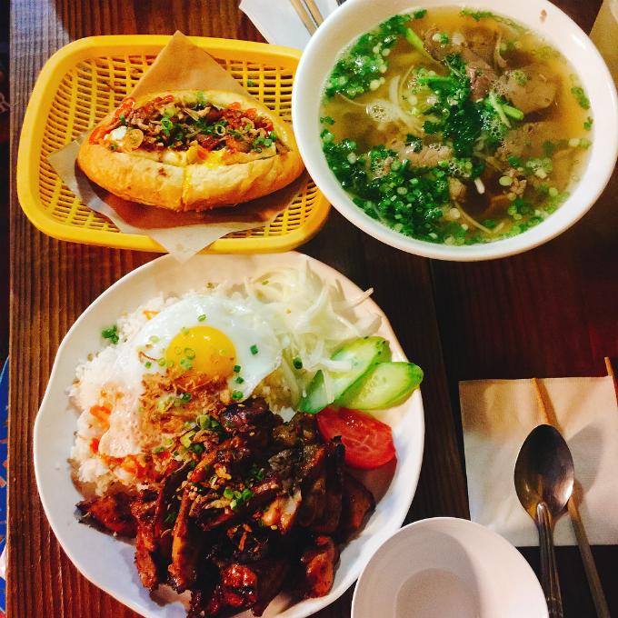 Các món ăn được phục vụ tại nhà hàng đều là những món đặc sản của dải đất hình chữ S như phở bò, bún bò Nam bộ, bún chả, cơm gà, bánh mì, ngô chiên, chả giò, salad đu đủ... Món nào cũng đầy ắp, trình bày đẹp mắt, đầy đủ nguyên liệu như ở Việt Nam.