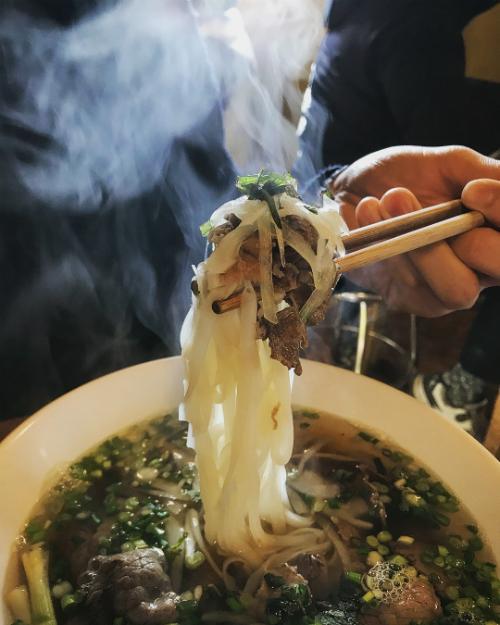 Món ăn được thực khách yêu thích và gọi nhiều nhất có lẽ là phở bò. Phở được nấu theo kiểu miền Nam với hành tây, ngò gai, với giá 12.000 won.