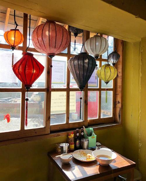 Bức tường vàng đi kèm đèn lồng rực rỡ gợi nhắc đến hình ảnh Hội An, còn tầm nhìn từ đỉnh dốc lại khiến du khách nhớ tới những quán nhỏ ở Đà Lạt. Từng chi tiết nhỏ trong quán cũng được "nhập nguyên chiếc" từ Việt Nam như chiếc ghế nhựa, ghế sắt, bàn gỗ, ống đũa...