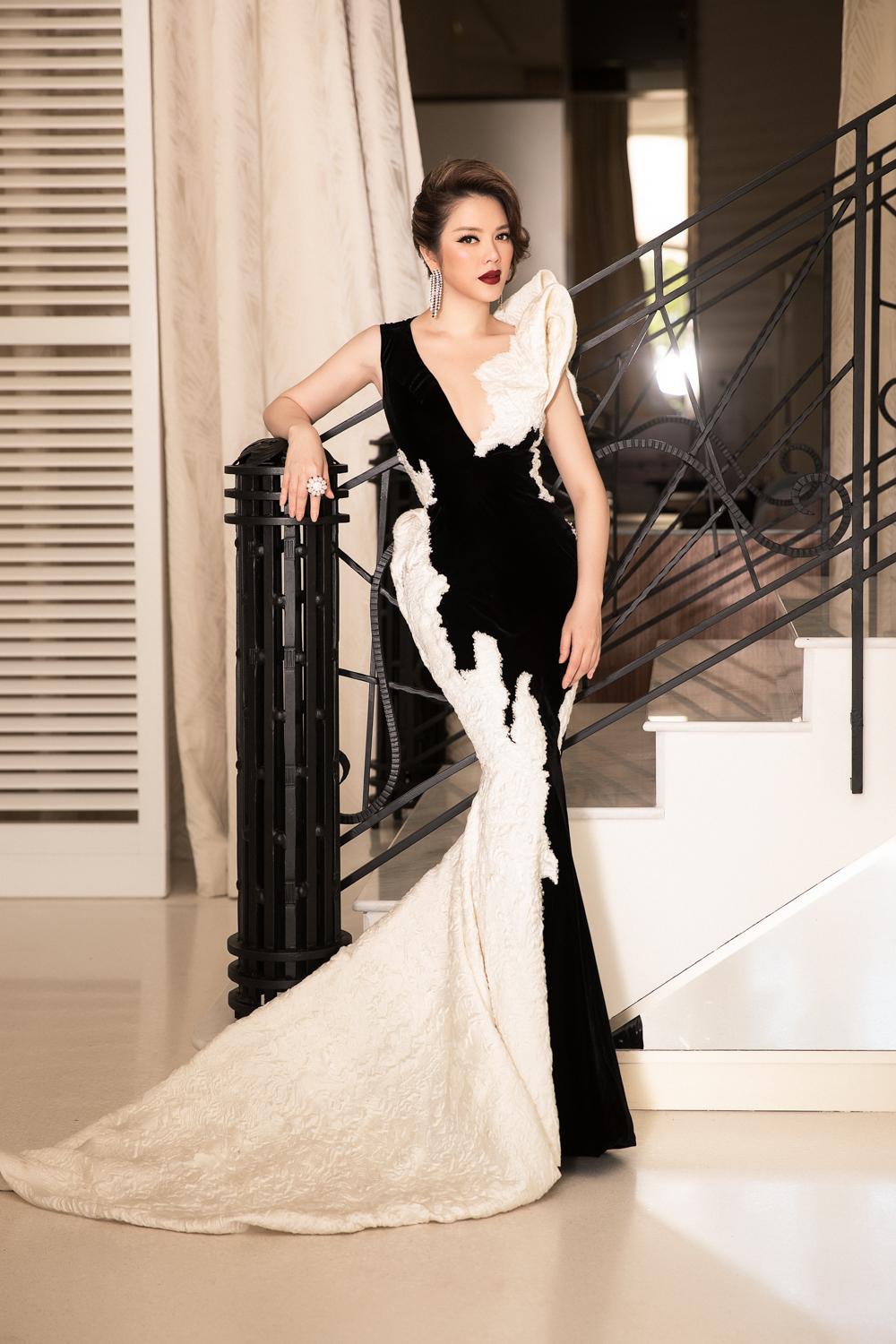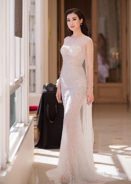 Đỗ Mỹ Linh diện đầm đuôi cá chất liệu xuyên thấu đính đá tỉ mỉ. Thiết kế cao cấp kiểu dáng ôm sát giúp người đẹp tôn trọn vóc dáng.