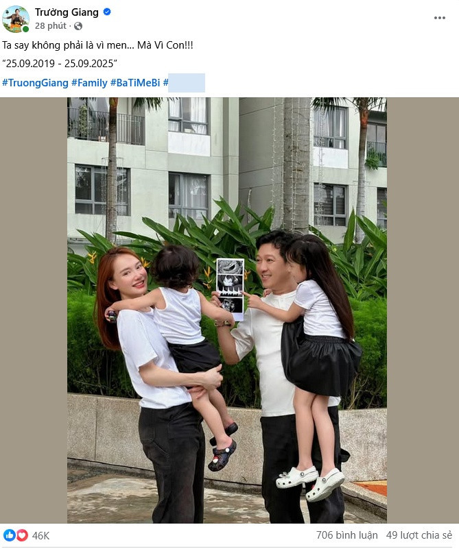 Nhã Phương cũng từng nhiều lần dành những lời ngợi khen cho ông xã, đặc biệt là khen ngợi anh là người chồng "10 điểm tuyệt đối" về cách chăm lo cho gia đình. Dù lịch trình công việc bận rộn nhưng Trường Giang dành thời gian để chơi và chăm sóc con nhỏ, đỡ đẫn công việc cho Nhã Phương.