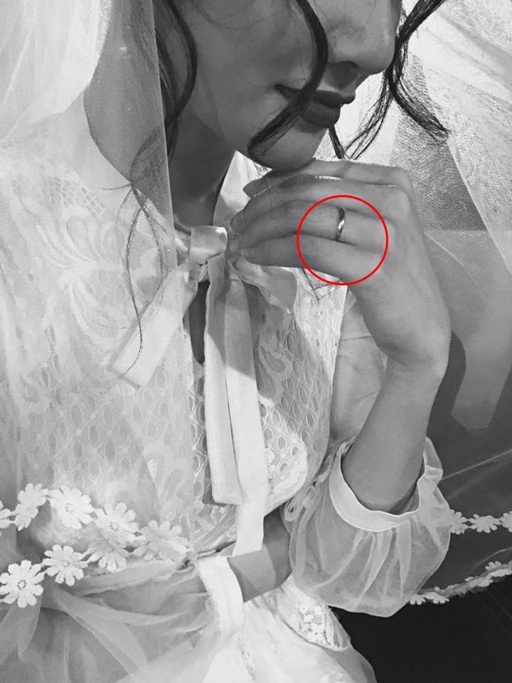 Nhã Phương mặc váy cưới khoe nhẫn ở ngón áp úp