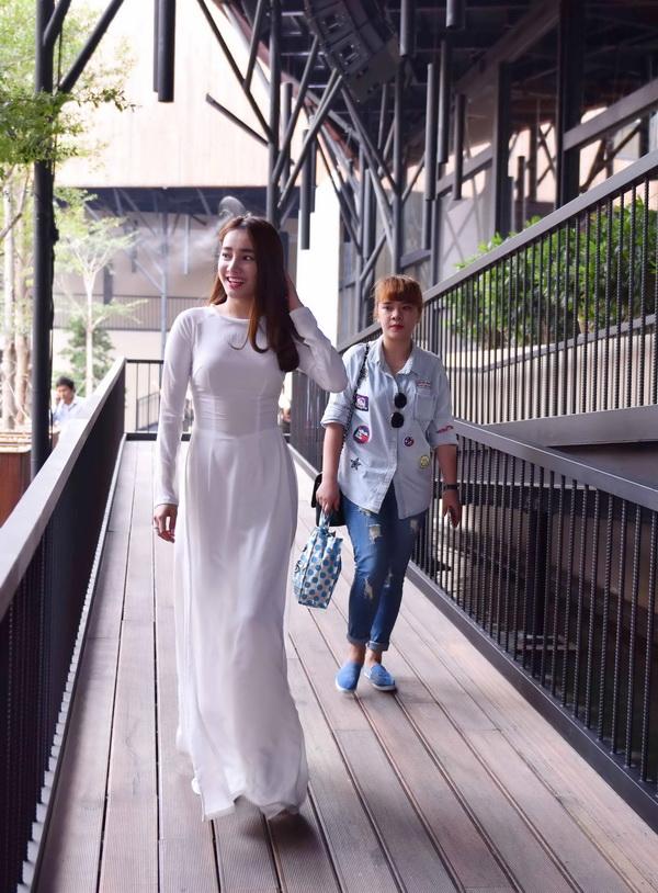 Nhã Phương xuất hiện với tà áo dài trắng tinh khôi, cô nàng khiến mọi người bất ngờ. Chuyện tình của cặp đôi này tốn khá nhiều giấy bút của báo chí, có vẻ như cả 2 lại quay về bên nhau đầy hạnh phúc