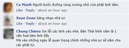 Bức ảnh nhà sư mang hình xăm trên facebook Việt cộng động mạng cho là phản cảm, nick Xuan Doan: “báng nhạo nhà sư”, tuy nhiên nick Chung Chinsu cho rằng: “…Bên Thái hình xăm là một văn hóa tâm linh đấy! …”
