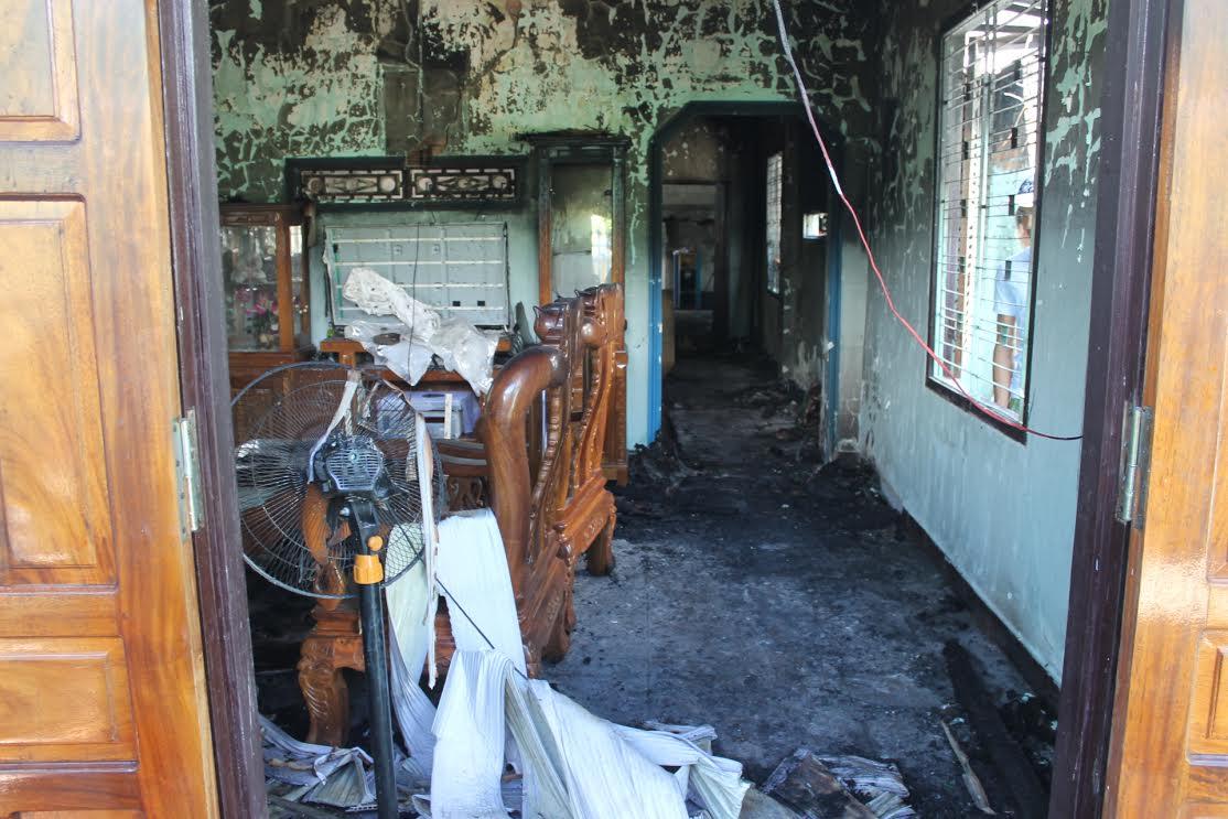 Nhiều vật dụng trong nhà bị thiêu rụi. Theo người dân địa phương, ông D. và bà L. từng có cuộc hôn nhân tan vỡ. Họ kết hôn vài năm trước. Gần đây, hai vợ chồng xảy ra mâu thuẫn nên bà L. ở với con trai riêng.