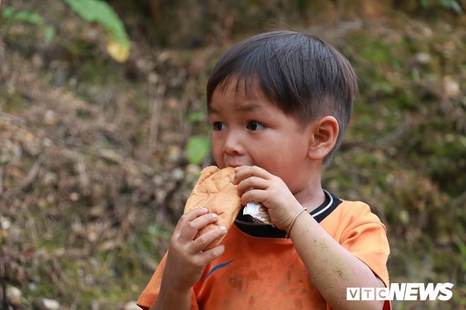 Những chiếc bánh mỳ nguội, ỉu và bẹp dúm vì quãng đường vận chuyển nhưng đám trẻ vẫn ăn ngon lành.