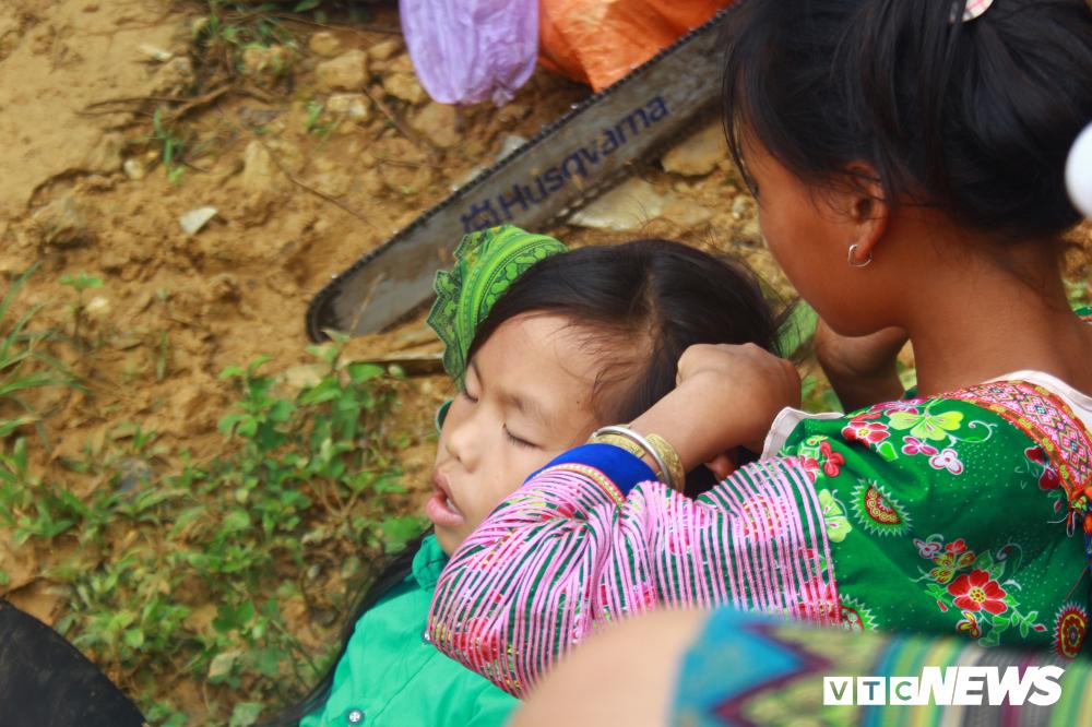 Những em bé ngơ ngác trên lưng mẹ và còn quá nhỏ để hiểu được nỗi mất mát quá lớn của cơn lũ quét.
