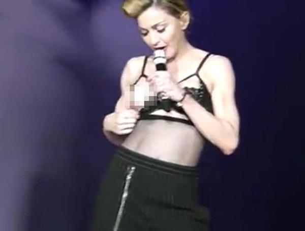 Năm 2012, dù đã ở tuổi 53 và con cái đã lớn, Madonna vẫn chẳng ngại ngần mà cởi phăng lớp áo ngực để khoe nhũ hoa trước đông đảo khán giả.