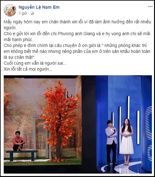 Nam Em gửi lời xin lỗi tới Trường Giang và Nhã Phương.