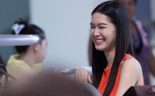 thủ ngồi cafe và trò chuyện một cách vui vẻ với một người bạn. Tuy nhiên, khi phải chia tay bạn để sang Mỹ, Hoa hậu không giấu nổi tâm trạng buồn bã.