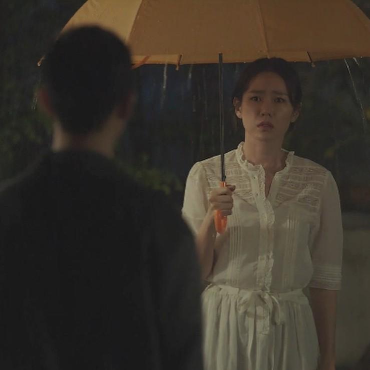 Ở phân cảnh lãng mạn cuối phim, Son Ye Jin mặc mẫu đầm trắng thắt eo. Cô nàng lại để kiểu tóc buộc thấp đơn giản. Chị Đẹp vẫn rất xinh đẹp nhưng kiểu tóc này khiến cô có phần xuề xòa, già nua.