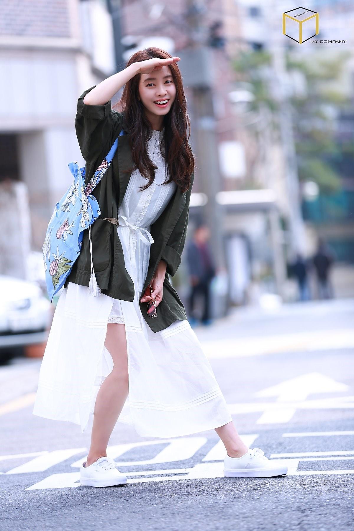 Cô nàng Kim So Hyun từng diện mẫu đầm trên khi ra sân bay. Giống như Song Ji Hyo, Kim So Hyun cũng để kiểu tóc xõa nhẹ nhàng và giày sneaker trẻ trung.