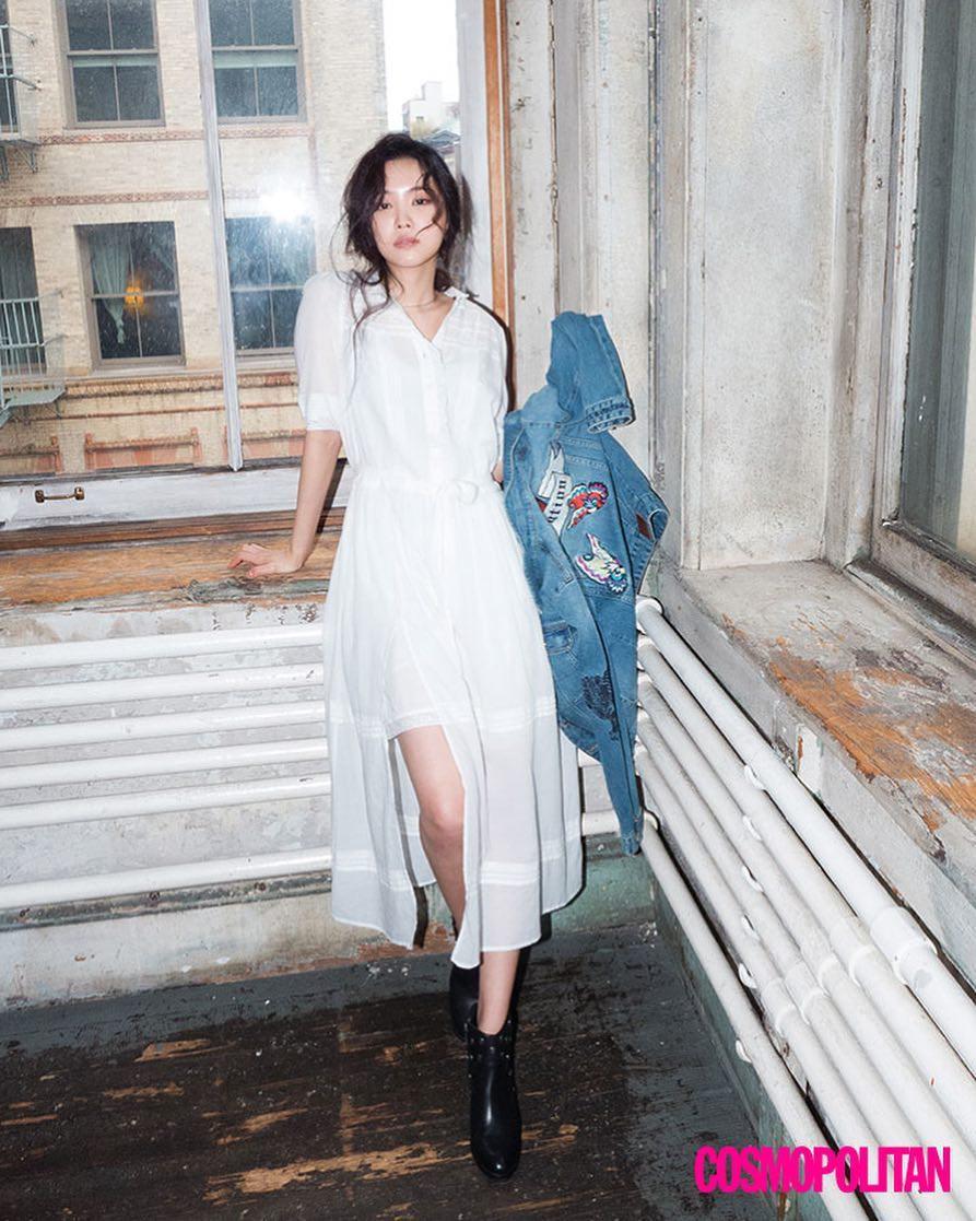 Rồi nhìn sang cô nàng Kim So Hyun, dù cùng để kiểu tóc buông xõa nhưng biểu cảm cùng với cách kết hợp áo denim họa tiết, boots da lại khiến cô nàng có vẻ phá cách, ấn tượng hơn hẳn.