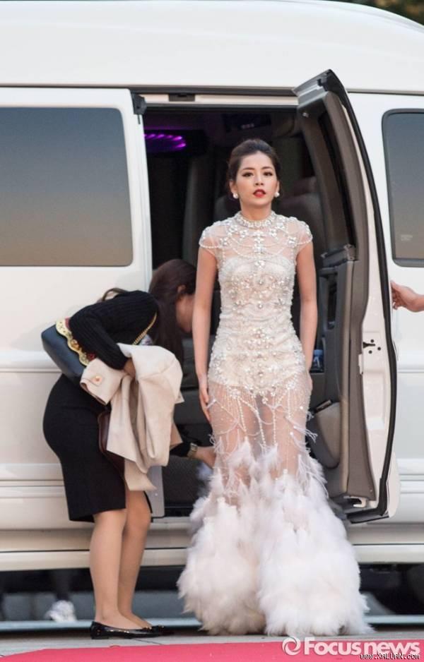 Ngay cả diện đầm đuôi cá, qua lớp vải xuyên thấu có thể rõ ràng nhận thấy cặp đùi to của giọng ca "Đóa hoa hồng".