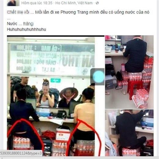 Ngày 2/4, một tài khoản mạng xã hội đã đăng tải những tấm ảnh chụp hai nhân viên hãng xe Phương Trang dùng các lốc nước suối phát cho hành khách kê lên ghế ngồi trong lúc đang bán vé cho khách.