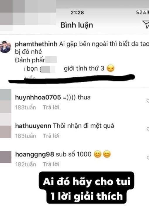 Cụ thể, mới đây một tài khoản Facebook có tên Trần Phong chia sẻ bức ảnh chụp màn hình dòng tin nhắn bình luận được cho là của Thế Thịnh. Ngay lập tức, thông tin này nhanh chóng nhận về rất nhiều quan tâm.